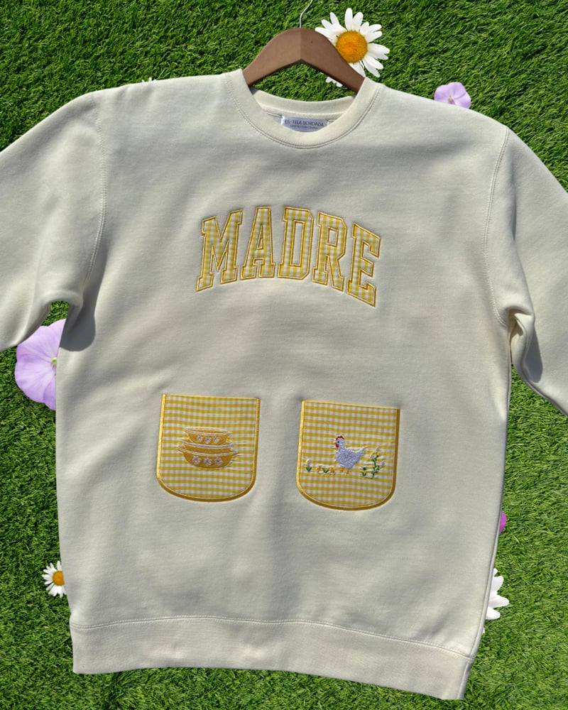 Made for moms, inspired by the mandil. This piece honors all the madrecitas and the way they show love through their cooking. Para todas las mamás de los pollitos.