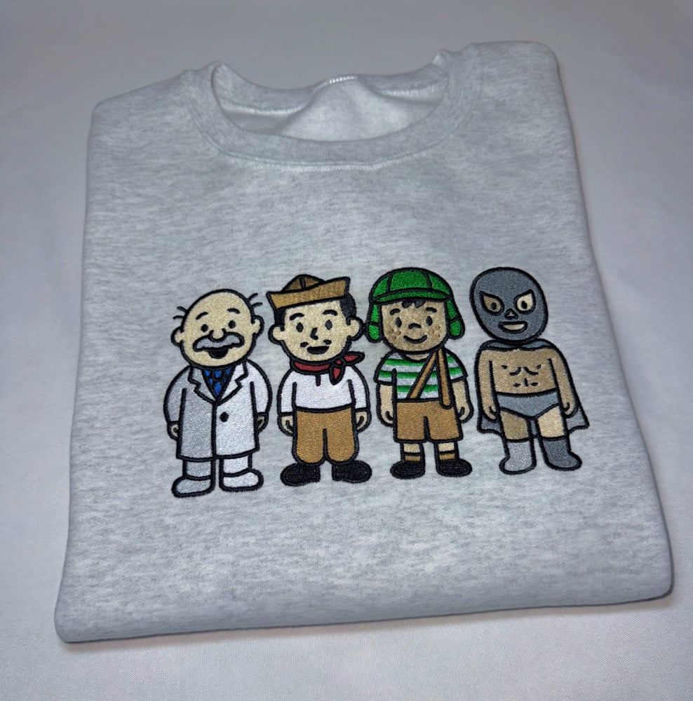 A tribute to the icons we grew up with: Dr. Simi, Cantinflas, El Chavo del 8, and El Santo. Nostalgic, funny, and full of orgullo Mexicano. Made to wear all year, con estilo y cultura.