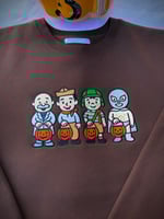 Dr. Simi, Cantinflas, El Chavo del 8, and El Santo go trick-or-treating in this playful mashup of cultura and spooky season. Nostalgic, fun, and puro orgullo Mexicano.