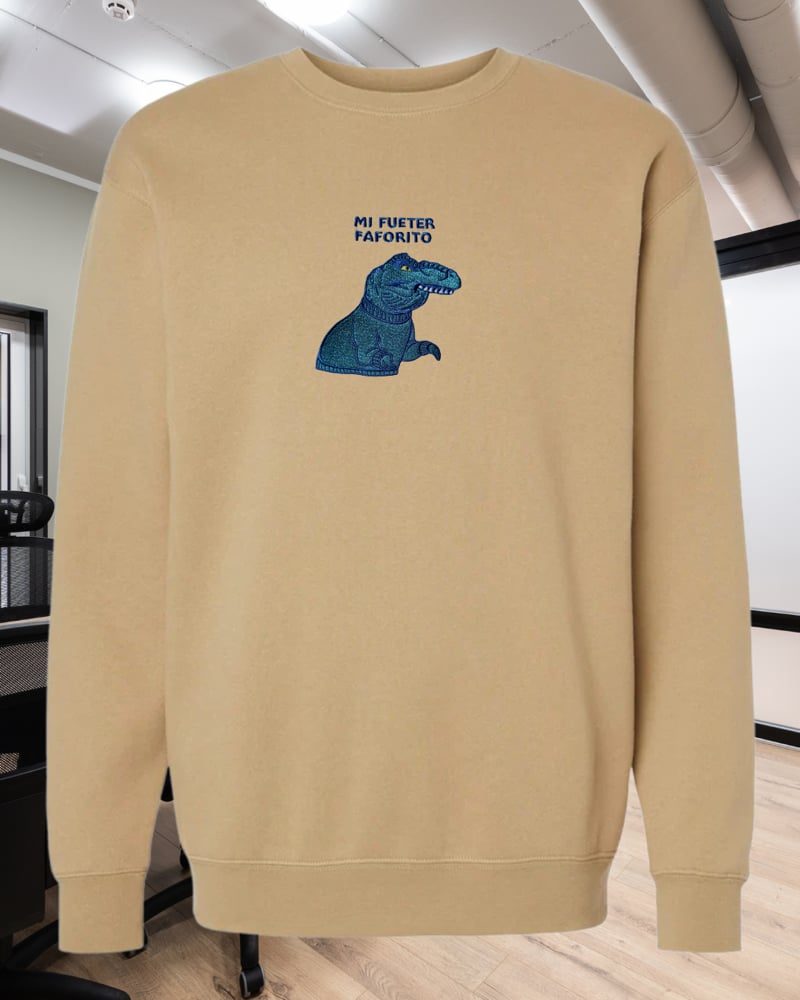 Inspired by the iconic mug from the new show La Oficina México but we gave it our own little twist. Instead of a mug, this dinosaur is wearing his fueter faforito.
