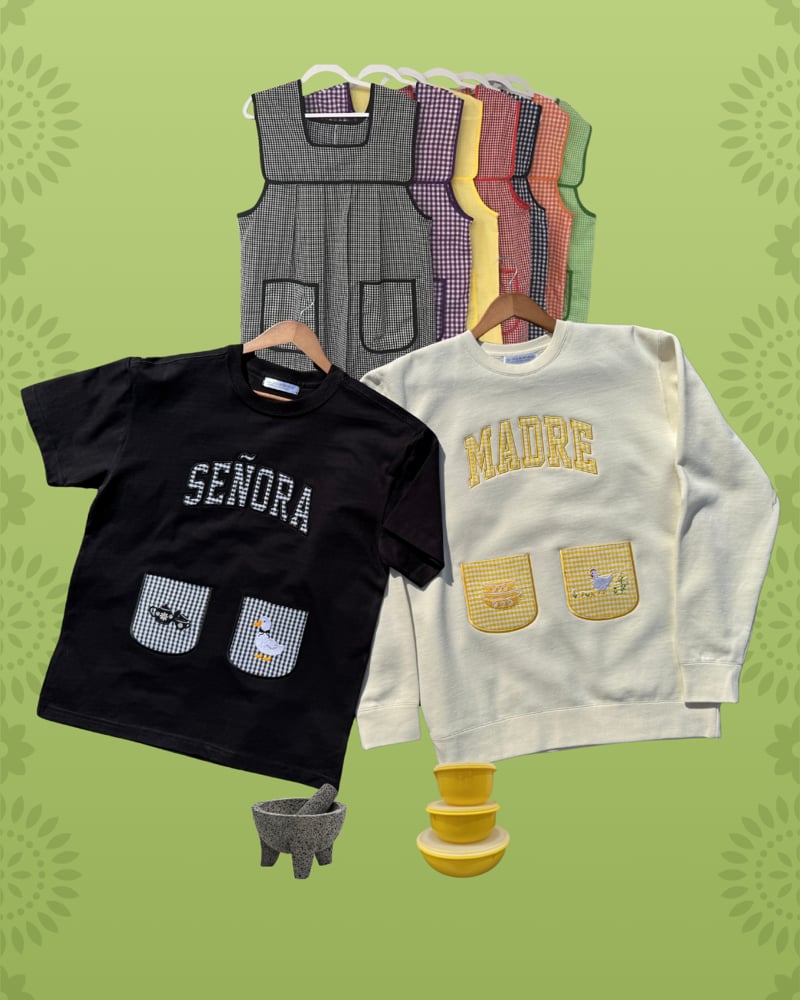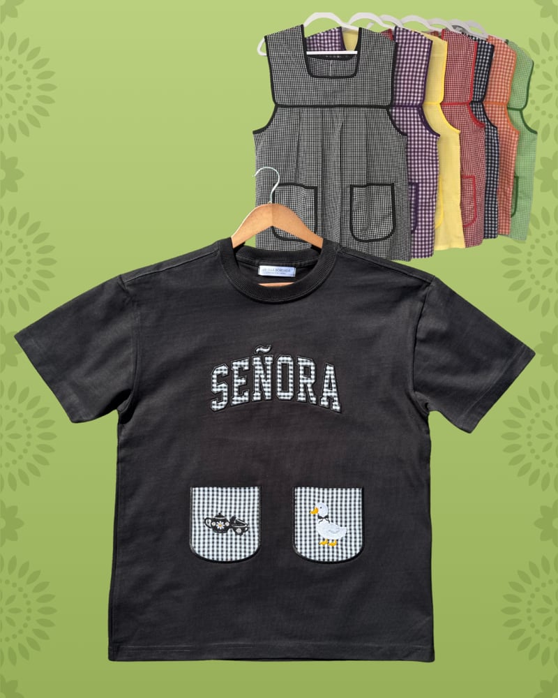 Made for all the señoras, inspired by the mandil. A fun piece made made with mandil fabric.